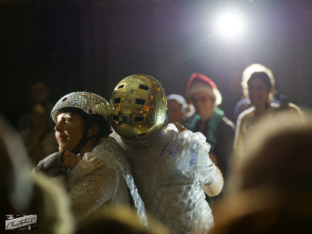 Venez habillés comme vous rêvez d’être (thème : “Révolution !”), et laissez-vous surprendre : dansez sur toutes les musiques (guinguette, pop des années 50 à nos jours, folklore d’ici & d’ailleurs, électro, Lac des Cygnes, comptines, punk… ), et découvrez de temps en temps des numéros improbables de cabaret musicaux.